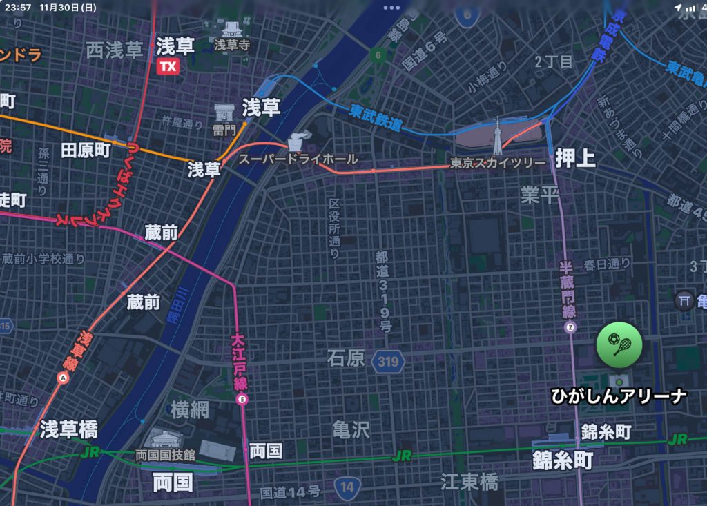 錦糸町公園内にあるひがしんアリーナは錦糸町駅まで徒歩5分くらい、ひがしんアリーナから東京まで公共交通機関で20分弱、またスカイツリーや浅草と主要観光スポットも近くにある地域です