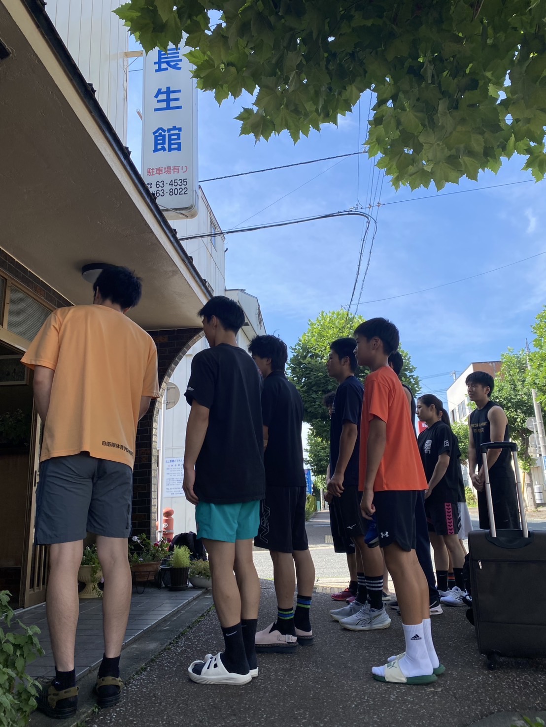 今大会に向けた合宿でお世話になったお宿に感謝の挨拶をする選手団