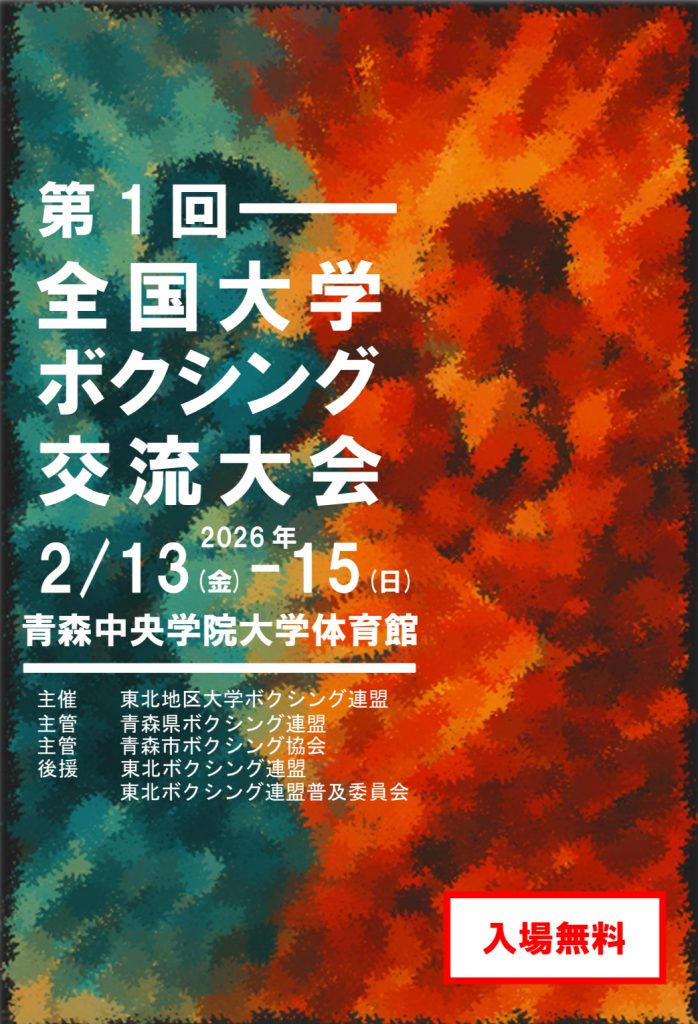 東北連盟主催による第一回全国大学ボクシング交流大会が行われ、全国から各大学の選手らが集合し公式試合及びスパーリング大会が行われました