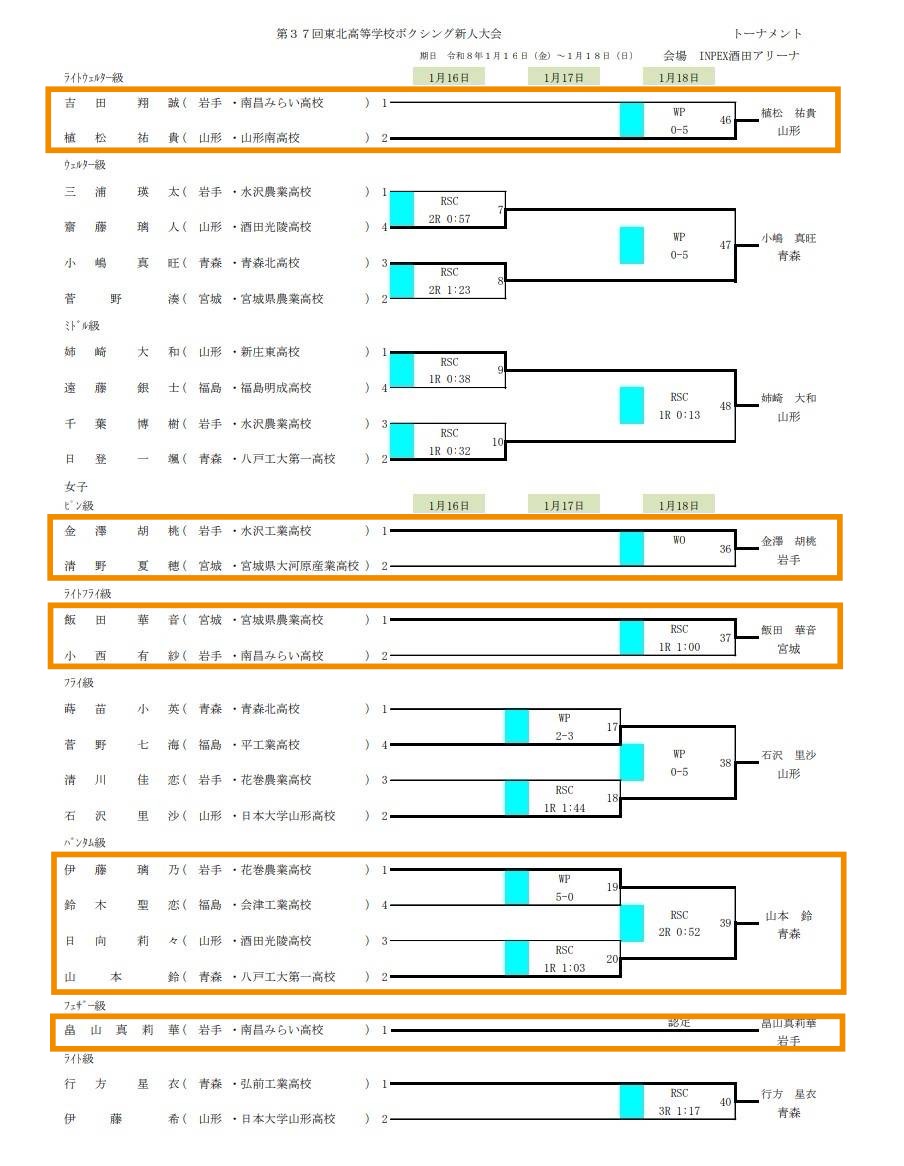 山形県酒田市インぺックスアリーナにて行われている東北大会決勝結果は下記の通りとなります