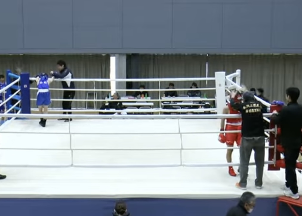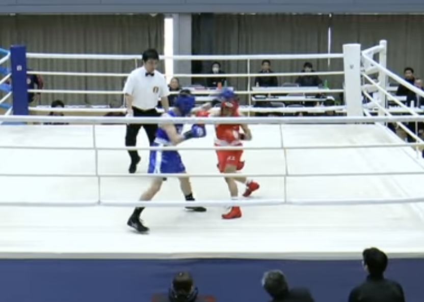 ダウン後明らかに流れが変わった左!伊藤選手(赤)