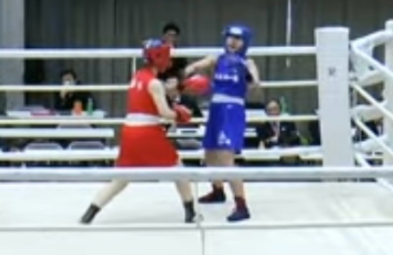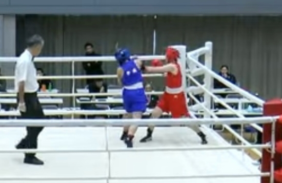 ダウン後明らかに流れが変わった左!伊藤選手(赤)